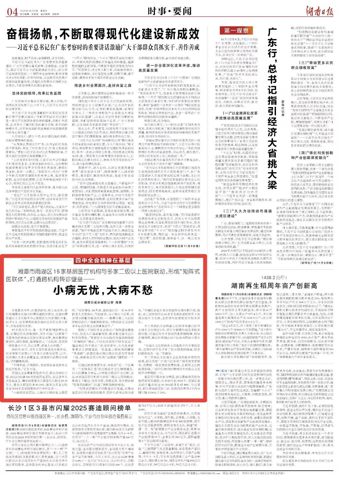 党的二十届四中全会指出:“加快建设健康中国,促进人口高质量发展,稳步推进基本公共服务均等化。”家庭医生与市级医院高效顺畅的“双向转诊”模式,不仅把优质医疗服务送进了偏远地区和不便出门的居民家中,也为急重症等重点人群搭建起一条直通上级医院的健康“快速路”。该模式是雨湖区推动优质医疗资源下沉,破解基层医疗机构“边缘化”困局的一个缩影。
