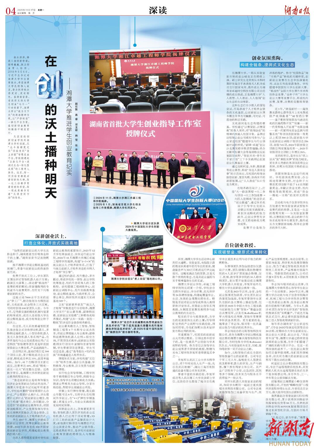 2025年1月,湖南省首批大学生创业指导工作室授牌,湘潭大学名列其中。