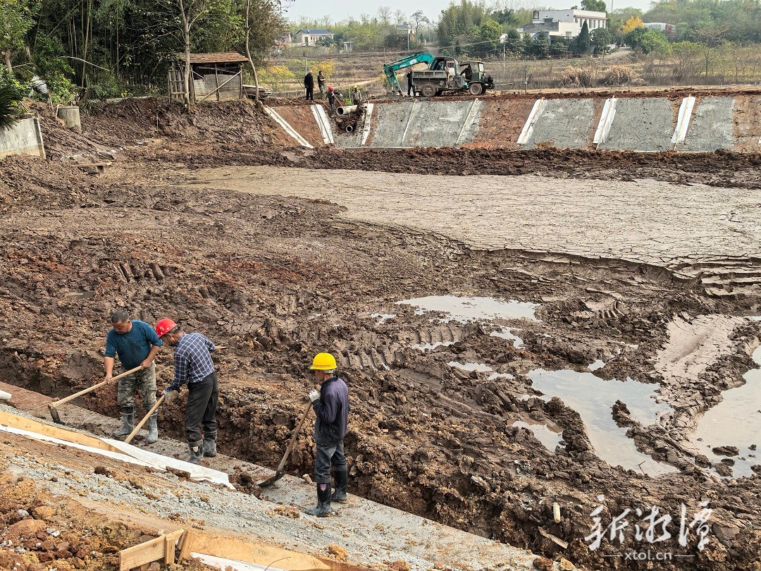 湘潭县高标准农田建设项目现场。(尹义龙 摄)在射埠镇高凤村,村支书尹森义开心地说:“我们地势高,灌溉难,山塘多年失修。今年整修27口山塘、硬化300米水渠后,全村近3000亩水田再也不怕旱涝了。”施工方技术负责人许胜占也表示,项目设计标准高、监督严、村民参与积极,施工环境也很好。