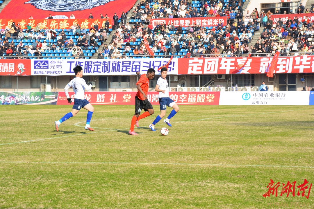 湖南日报·新湖南客户端1月24日讯(记者 彭婷)今天下午,2026年湘潭市“贺岁杯”足球邀请赛第二轮赛事,在湘潭市体育中心开赛,岳塘区队与韶山市队展开激烈角逐。最终,岳塘区队以5:0战胜韶山市队,拿下该区主场首胜。现场球迷加油声、呐喊声、欢呼声一片。