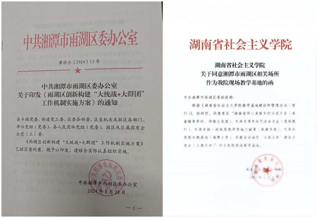 《创新构建“大统战+大群团”工作机制》入选《湖南省统战工作创新性文件汇编》、雨湖区被列为“湖南省社会主义学院现场教学点”